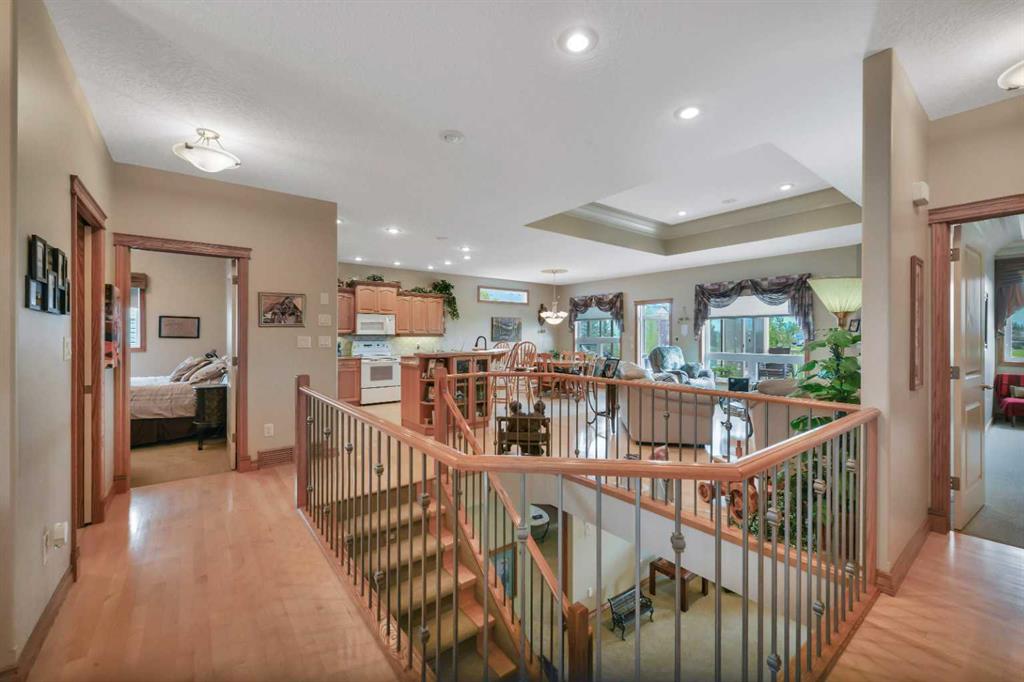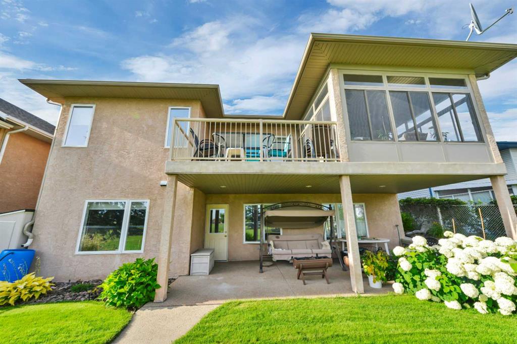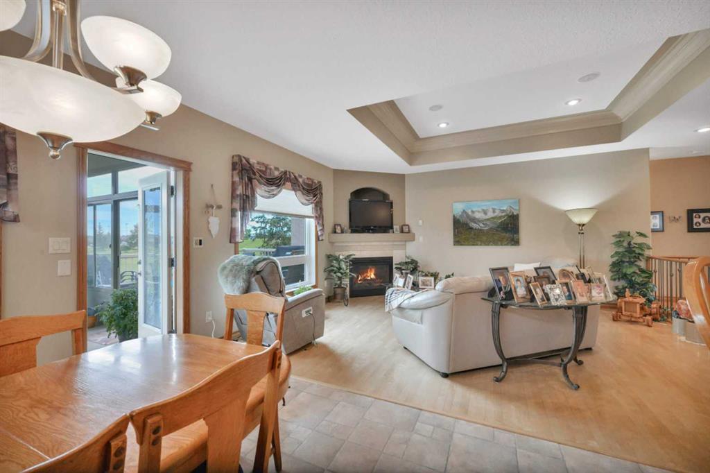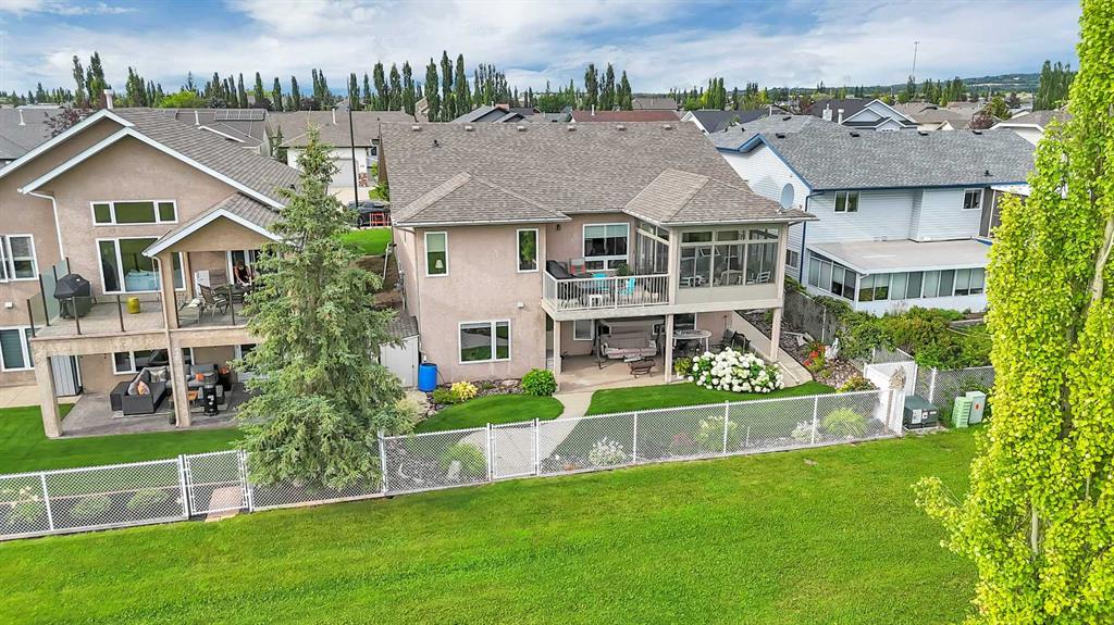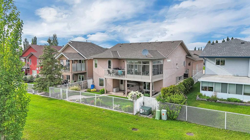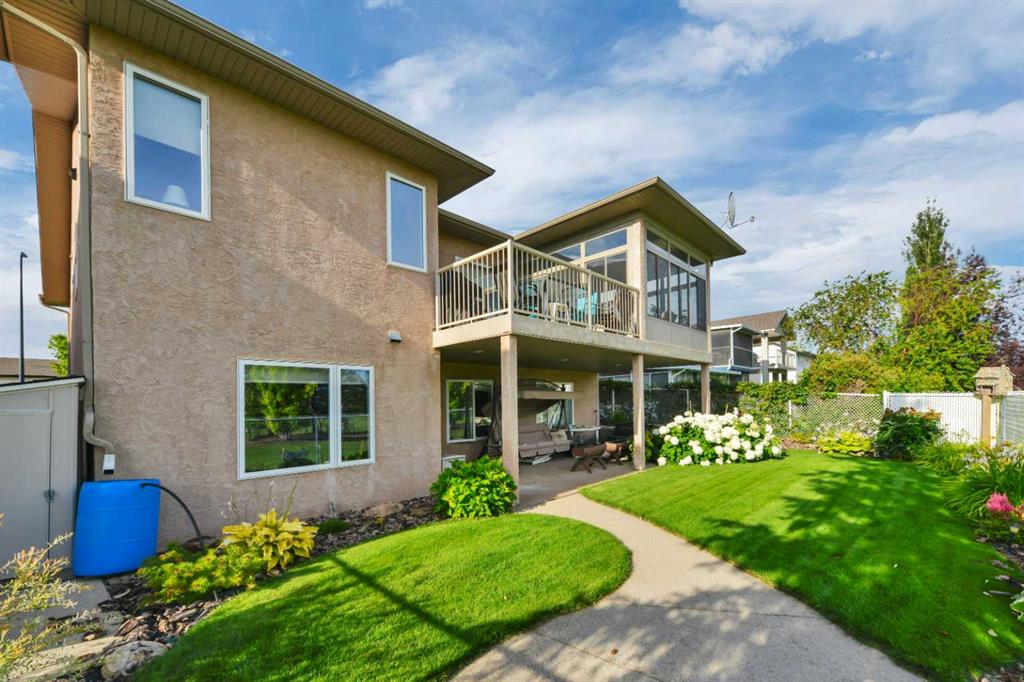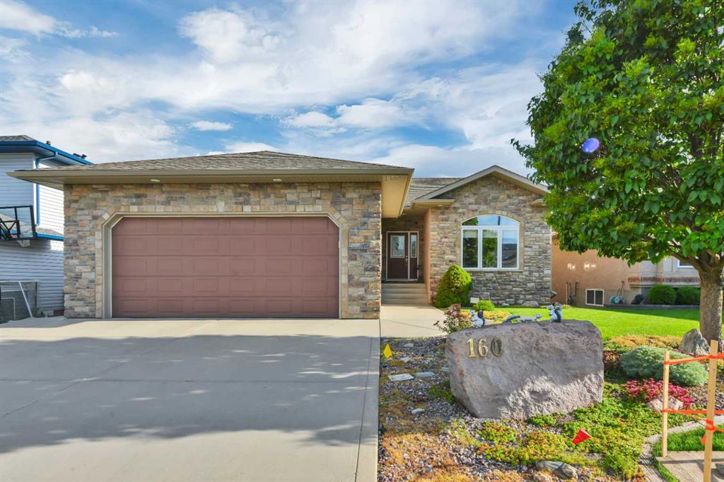 Built by Integra Homes, this stunning 5-bedroom, 3-bathroom bungalow offers space, style, and thoughtful design throughout. Located in a quiet, family-friendly neighborhood in Red Deer, this home combines modern comfort with timeless charm. Step inside to discover a spacious main floor featuring raised ceilings, gleaming hardwood floors in the living room, elegant crown molding, and a cozy gas fireplace. The large kitchen is perfect for entertaining, flowing seamlessly into the dining room and a bright, beautiful sunroom that leads to the back deck—ideal for enjoying the peaceful green space views. The main level hosts three bedrooms, including a generous primary suite with a 4-piece ensuite and walk-in closet, as well as convenient main floor laundry. Downstairs, the fully finished walkout basement offers two additional bedrooms, a full bathroom, and a large family room complete with a wet bar and access to a covered patio. A bonus/theatre room with built-in speakers provides the perfect space for movie nights or game day gatherings. This home is packed with extras, including in-floor heat, central air conditioning, a new water heater, and underground sprinklers in the fully landscaped yard. Whether you're relaxing in the sunroom, hosting guests in the spacious basement, or enjoying the quiet greenspace from your private backyard, 160 Daniel Crescent has everything you need to feel right at home.