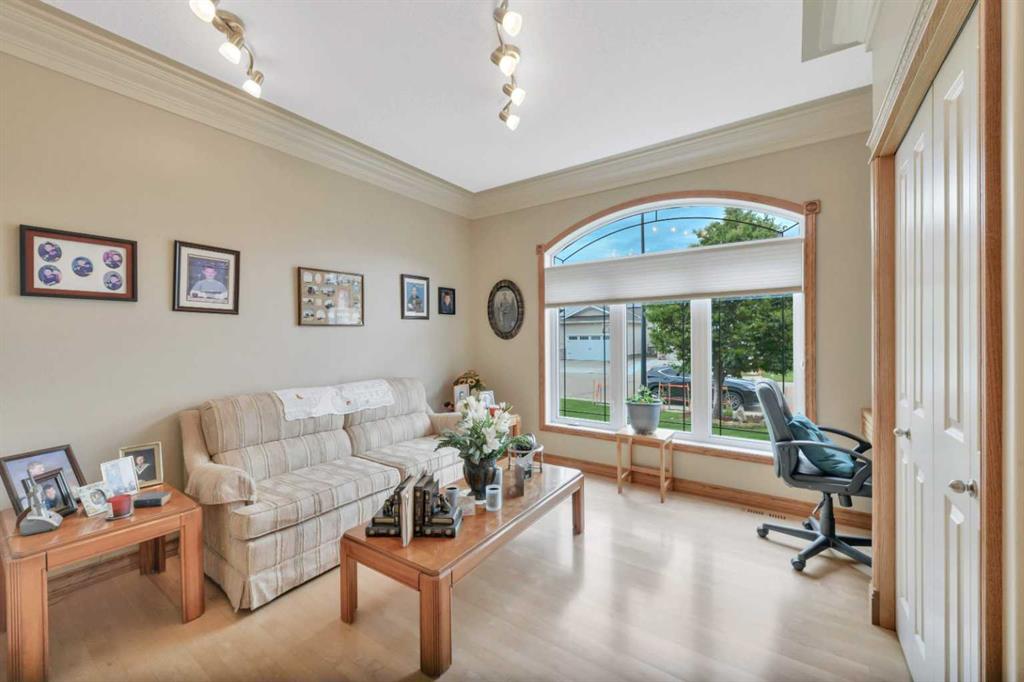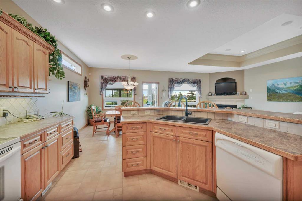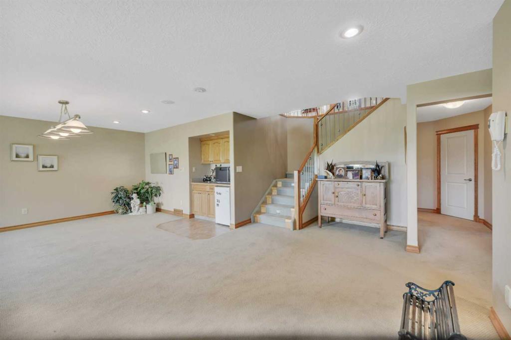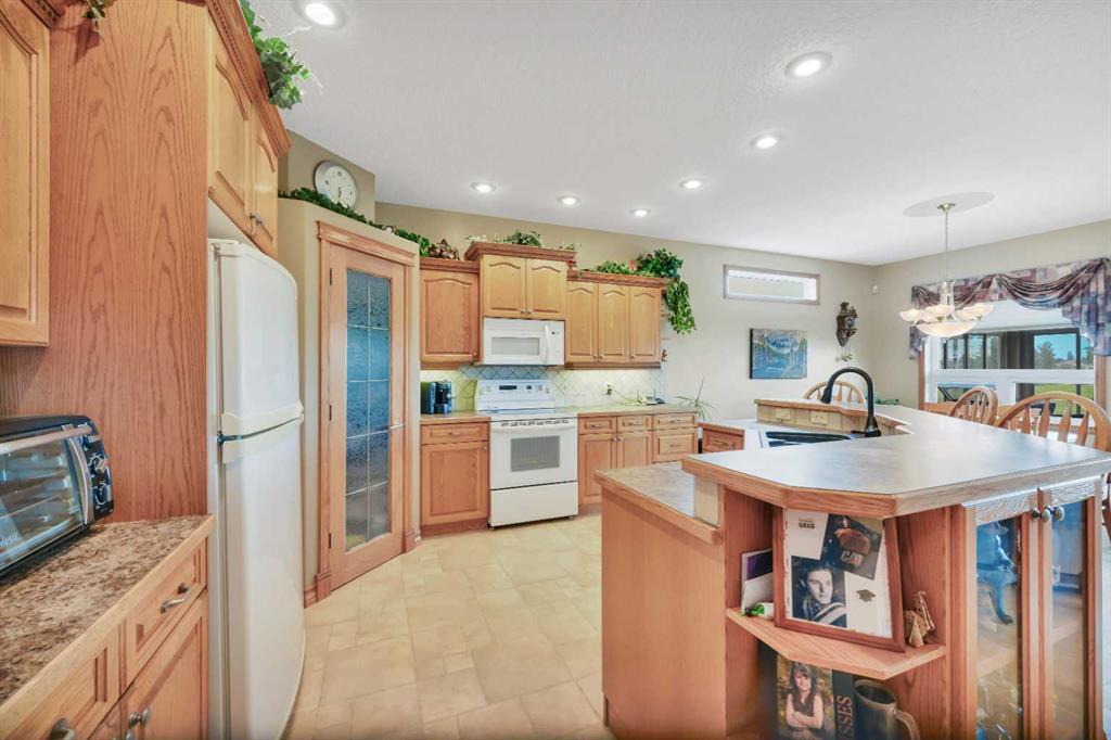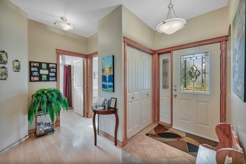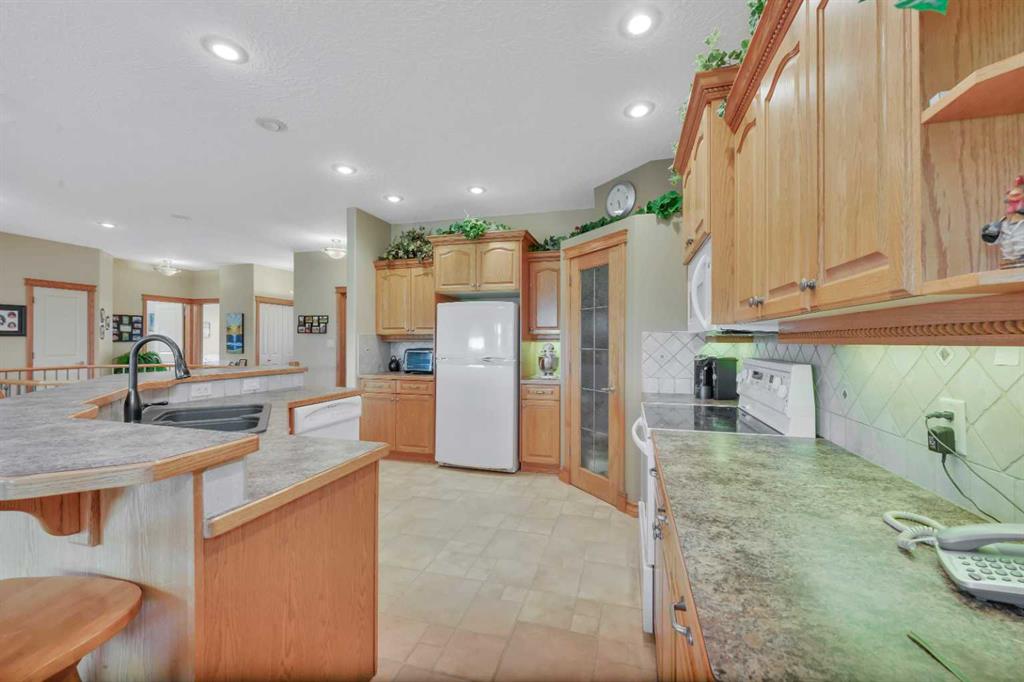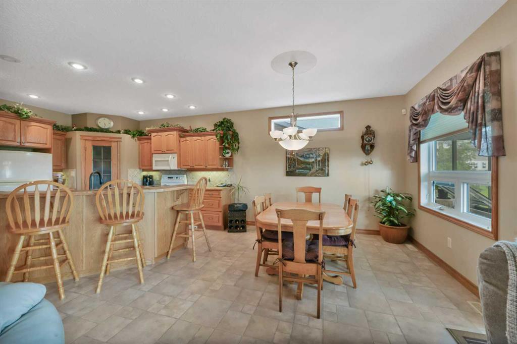 Built by Integra Homes, this stunning 5-bedroom, 3-bathroom bungalow offers space, style, and thoughtful design throughout. Located in a quiet, family-friendly neighborhood in Red Deer, this home combines modern comfort with timeless charm. Step inside to discover a spacious main floor featuring raised ceilings, gleaming hardwood floors in the living room, elegant crown molding, and a cozy gas fireplace. The large kitchen is perfect for entertaining, flowing seamlessly into the dining room and a bright, beautiful sunroom that leads to the back deck—ideal for enjoying the peaceful green space views. The main level hosts three bedrooms, including a generous primary suite with a 4-piece ensuite and walk-in closet, as well as convenient main floor laundry. Downstairs, the fully finished walkout basement offers two additional bedrooms, a full bathroom, and a large family room complete with a wet bar and access to a covered patio. A bonus/theatre room with built-in speakers provides the perfect space for movie nights or game day gatherings. This home is packed with extras, including in-floor heat, central air conditioning, a new water heater, and underground sprinklers in the fully landscaped yard. Whether you're relaxing in the sunroom, hosting guests in the spacious basement, or enjoying the quiet greenspace from your private backyard, 160 Daniel Crescent has everything you need to feel right at home.