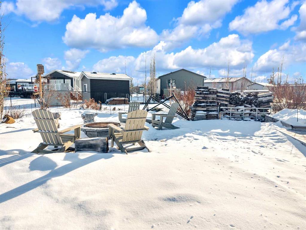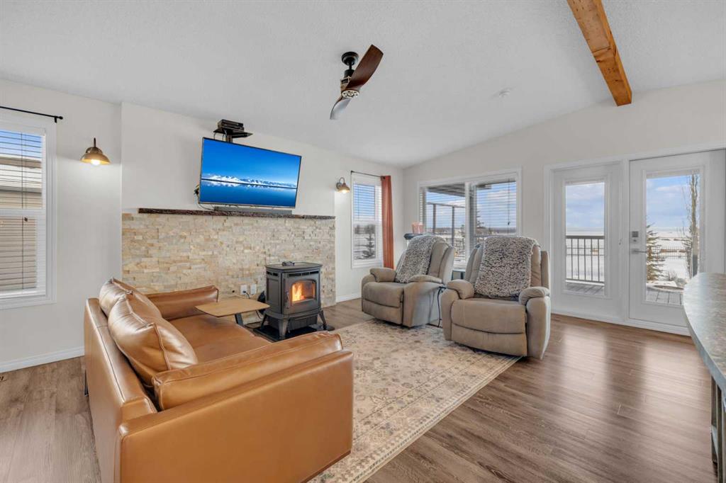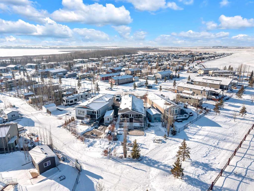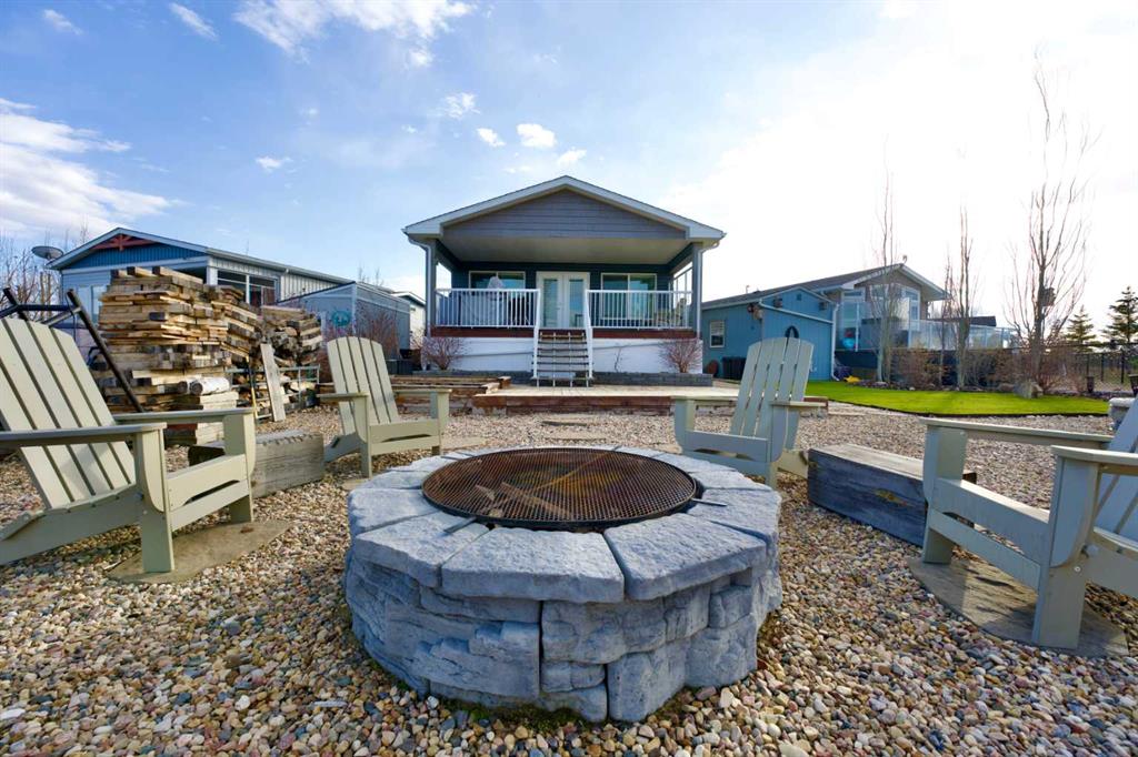 Welcome to Sandy Point Resort, an exclusive gated lakeside community on the west shores of Gull Lake, just minutes from Bentley—where refined living, nature, and recreation come together in a true four-season retreat. Tucked away on a large pie-shaped lot in a quiet cul-de-sac, this custom-designed 2-bedroom, 1-bathroom executive home backs directly onto the golf course driving range with no neighbours behind, offering exceptional privacy and unobstructed panoramic views of the lake and fairways. Fully landscaped and thoughtfully positioned, this property delivers a peaceful, private setting surrounded by breathtaking scenery. A spacious 10 x 24 covered back deck extends your living space outdoors, providing the perfect place to relax, entertain, and take in the stunning lake and golf course views in any season. Inside, the Great Room is the heart of the home—warm, inviting, and designed for both comfort and entertaining. A cozy pellet stove framed by a striking stone feature wall creates ambiance year-round, while expansive picture windows flood the space with natural light and showcase the stunning views. The open-concept design flows seamlessly into the chef’s kitchen, complete with a gas stove, pot drawers, custom lighting, and a spacious walk-through pantry with solid shelving, offering both style and exceptional functionality. The primary bedroom easily accommodates a king-size bed and features a large walk-through closet with Jack-and-Jill access to the bathroom, blending comfort with convenience. A generous second bedroom provides the perfect space for guests, making this home ideal for hosting family and friends. Sandy Point Resort offers a truly elevated lifestyle with exclusive resident amenities including a community gazebo with fire pit, playgrounds, scenic bike trails, and convenient on-site laundry, showers, and restrooms for year-round enjoyment. Golf enthusiasts will appreciate the driving range and the upcoming brand-new 12-hole golf course. The full-service marina with gas and propane makes lake days effortless, while the seasonal restaurant with rooftop patio is the perfect place to relax and take in the views. Additional features include gated storage, a community garden, and close proximity to local greenhouses and berry farms, offering a true farm-to-table lifestyle. Whether you’re seeking a seasonal escape or a full-time residence, this one-of-a-kind custom home is a rare opportunity to own a prime lake property in one of Alberta’s most desirable resort communities. Enjoy lakeside living, year-round recreation, and a vibrant community—all just a short drive to Bentley, Lacombe, and Sylvan Lake. This is lake life at its finest. Book your showing today.