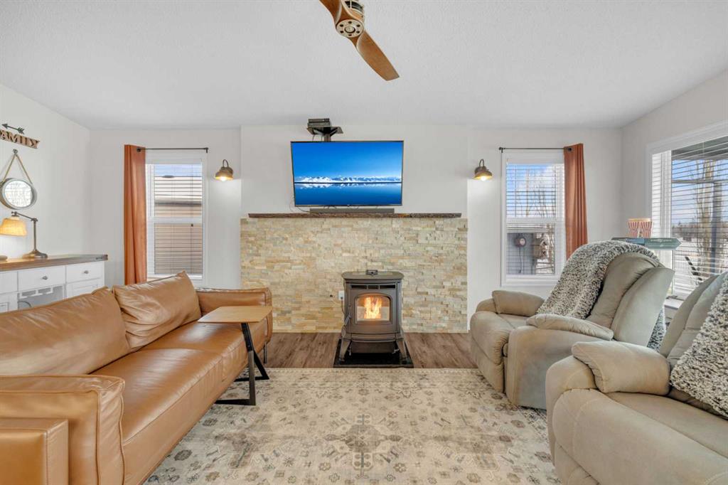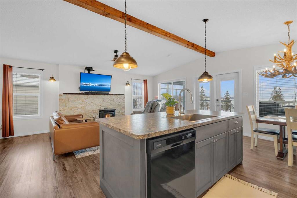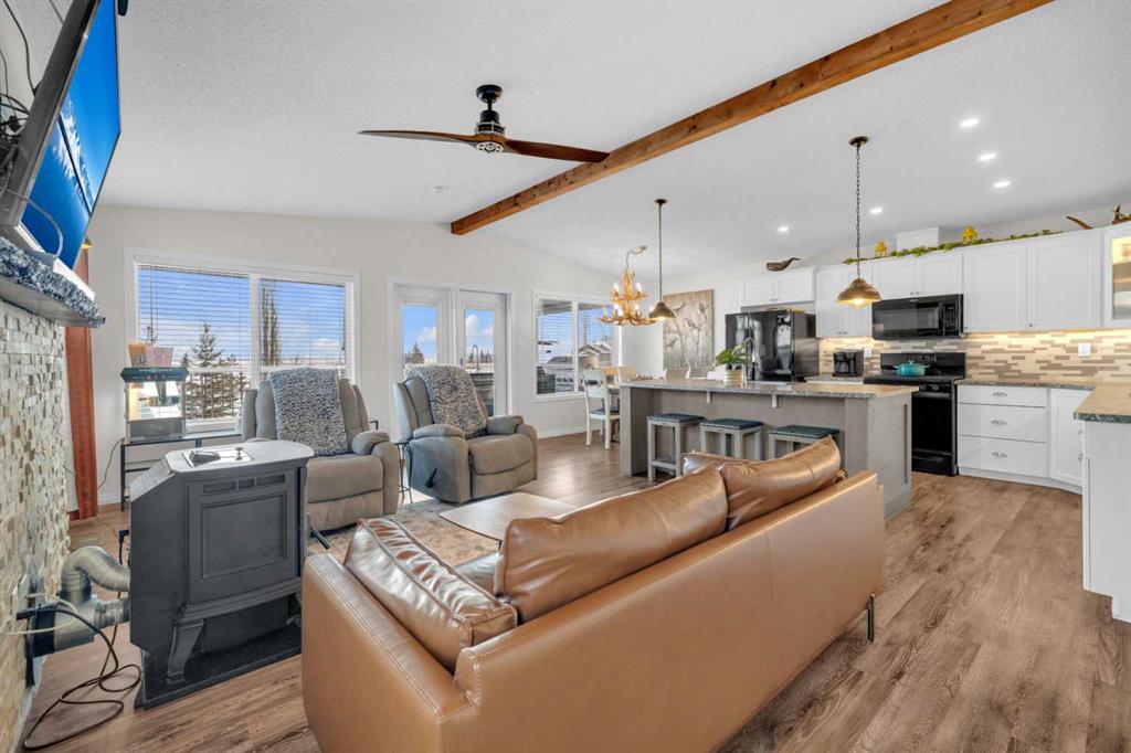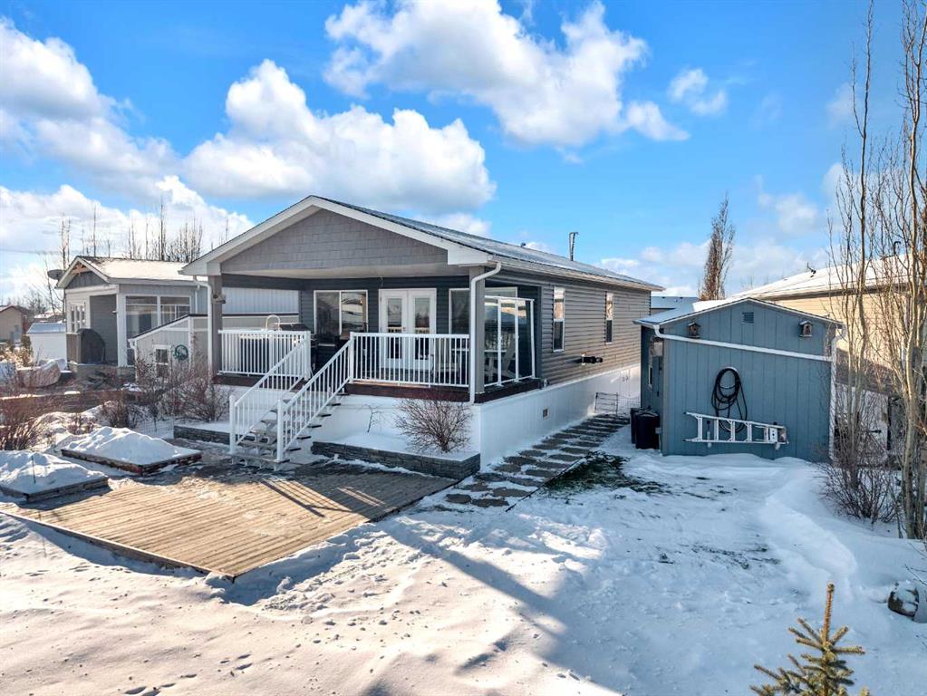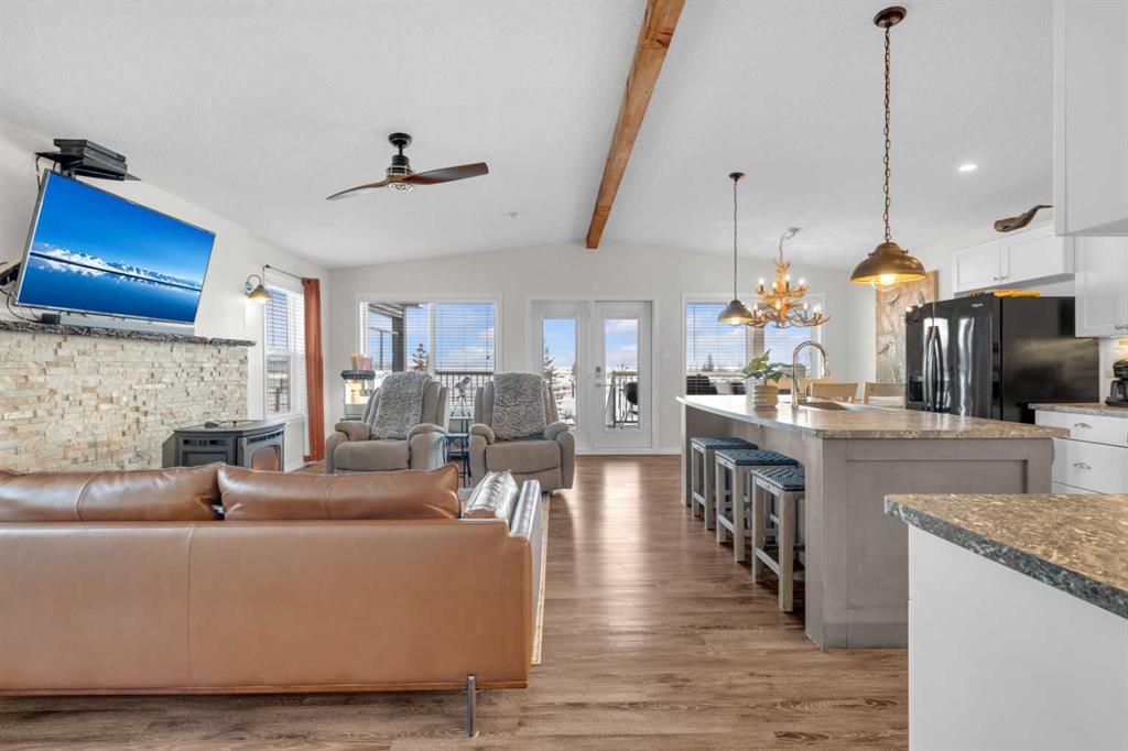 Welcome to Sandy Point Resort, an exclusive gated lakeside community on the west shores of Gull Lake, just minutes from Bentley—where refined living, nature, and recreation come together in a true four-season retreat. Tucked away on a large pie-shaped lot in a quiet cul-de-sac, this custom-designed 2-bedroom, 1-bathroom executive home backs directly onto the golf course driving range with no neighbours behind, offering exceptional privacy and unobstructed panoramic views of the lake and fairways. Fully landscaped and thoughtfully positioned, this property delivers a peaceful, private setting surrounded by breathtaking scenery. A spacious 10 x 24 covered back deck extends your living space outdoors, providing the perfect place to relax, entertain, and take in the stunning lake and golf course views in any season. Inside, the Great Room is the heart of the home—warm, inviting, and designed for both comfort and entertaining. A cozy pellet stove framed by a striking stone feature wall creates ambiance year-round, while expansive picture windows flood the space with natural light and showcase the stunning views. The open-concept design flows seamlessly into the chef’s kitchen, complete with a gas stove, pot drawers, custom lighting, and a spacious walk-through pantry with solid shelving, offering both style and exceptional functionality. The primary bedroom easily accommodates a king-size bed and features a large walk-through closet with Jack-and-Jill access to the bathroom, blending comfort with convenience. A generous second bedroom provides the perfect space for guests, making this home ideal for hosting family and friends. Sandy Point Resort offers a truly elevated lifestyle with exclusive resident amenities including a community gazebo with fire pit, playgrounds, scenic bike trails, and convenient on-site laundry, showers, and restrooms for year-round enjoyment. Golf enthusiasts will appreciate the driving range and the upcoming brand-new 12-hole golf course. The full-service marina with gas and propane makes lake days effortless, while the seasonal restaurant with rooftop patio is the perfect place to relax and take in the views. Additional features include gated storage, a community garden, and close proximity to local greenhouses and berry farms, offering a true farm-to-table lifestyle. Whether you’re seeking a seasonal escape or a full-time residence, this one-of-a-kind custom home is a rare opportunity to own a prime lake property in one of Alberta’s most desirable resort communities. Enjoy lakeside living, year-round recreation, and a vibrant community—all just a short drive to Bentley, Lacombe, and Sylvan Lake. This is lake life at its finest. Book your showing today.