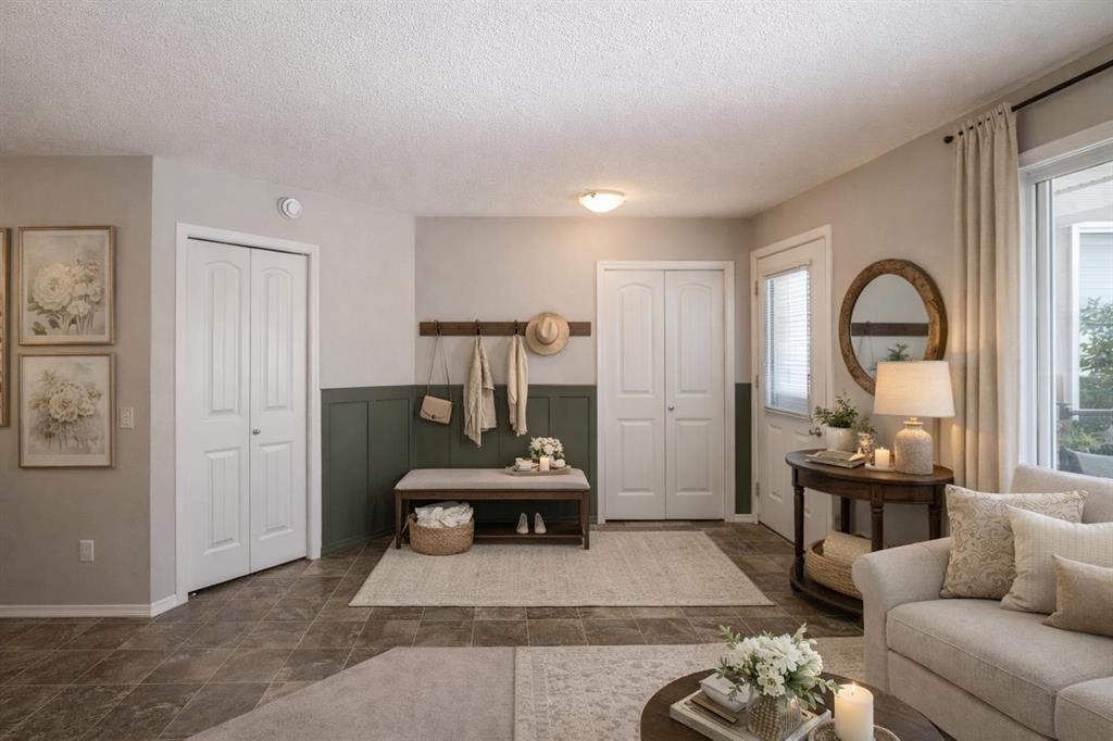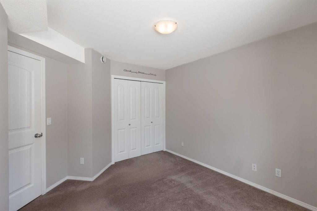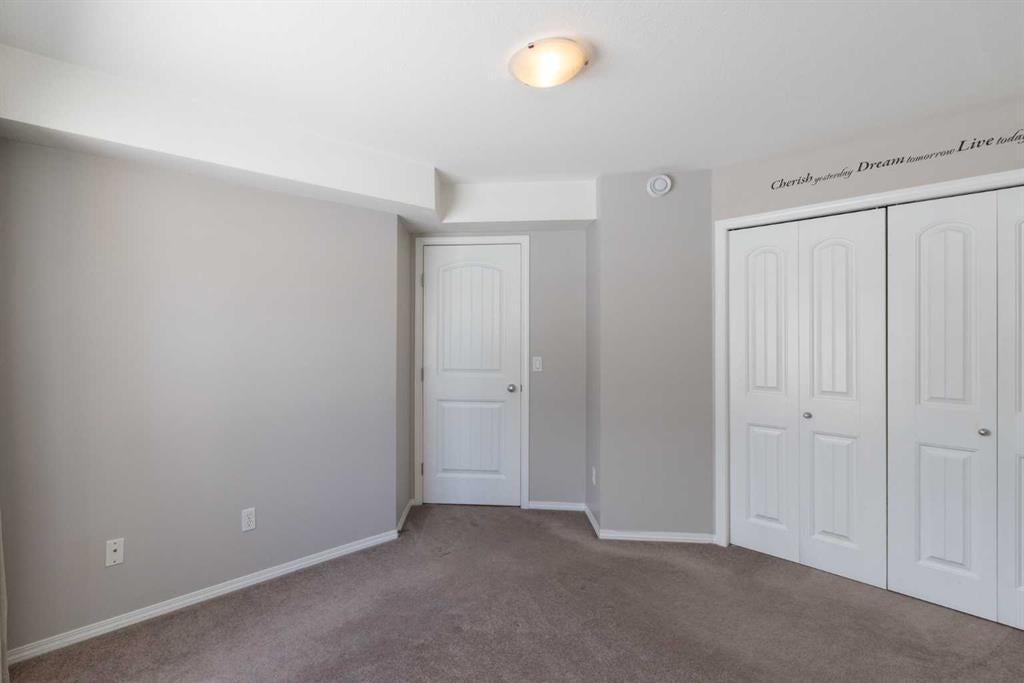 Move-in ready and vacant for immediate possession, this beautifully maintained ground floor condo offers both comfort and convenience. Enjoy easy access with parking located just steps from your front door, plus nearby visitor parking for guests. The welcoming front entry provides the perfect opportunity to add your own personal touch, while the private concrete patio at the back is ideal for relaxing, barbecuing, or adding garden boxes. Inside, the bright open-concept layout features modern paint tones, stylish white cabinetry, and a functional corner pantry for added storage. The kitchen flows seamlessly into the dining and living areas, creating a warm and inviting space for everyday living or entertaining. The updated bathroom showcases contemporary black fixtures and hardware for a sleek, modern finish. Offering two bedrooms, including a second bedroom with direct access to the back patio, this home embraces indoor-outdoor living with a peaceful greenspace setting. With two separate entrances, two assigned parking stalls, low condo fees, and a truly turn-key condition, this is an excellent opportunity for first-time buyers, downsizers, or investors alike.